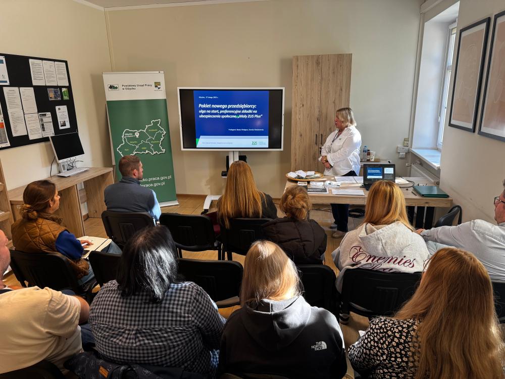 W ramach grupowego poradnictwa zawodowego osoby ubiegające się o wsparcie finansowe w postaci dotacji na założenie własnej działalności gospodarczej uczestniczyły w spotkaniu dotyczącym zakładania i prowadzenia firmy. Gościliśmy pracowników merytorycznych z Zakładu Ubezpieczeń Społecznych – panią Beatę Wielgosz oraz Urzędu Skarbowego- panią Annę Baniewską. Swoją wiedzą oraz dobrymi radami podzieliła się również Dyrektor Powiatowego Urzędu Pracy pani Małgorzata Żukowska.